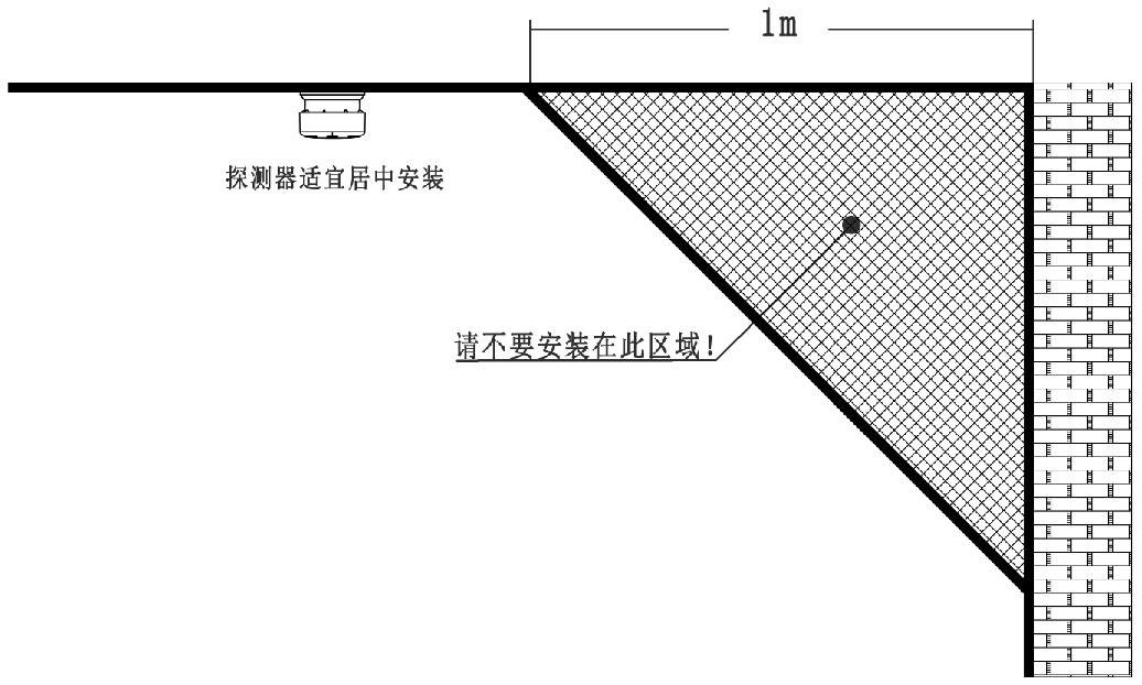 Om du installerar röklarmet i en passage vars bredd är mindre än 3M, installera den i mitten och installera en enhet varje 12m.