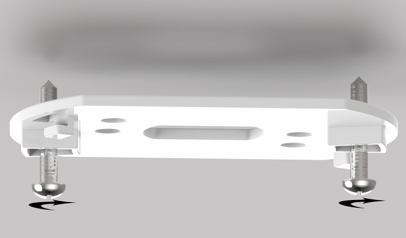 en. Håll monteringsplattan mot det valda installationsläget i taket och markera mitten av två skruvhål med en penna. Borra hål genom penna märken och använd de medföljande skruvarna och ankarna för att säkra monteringsplattan.