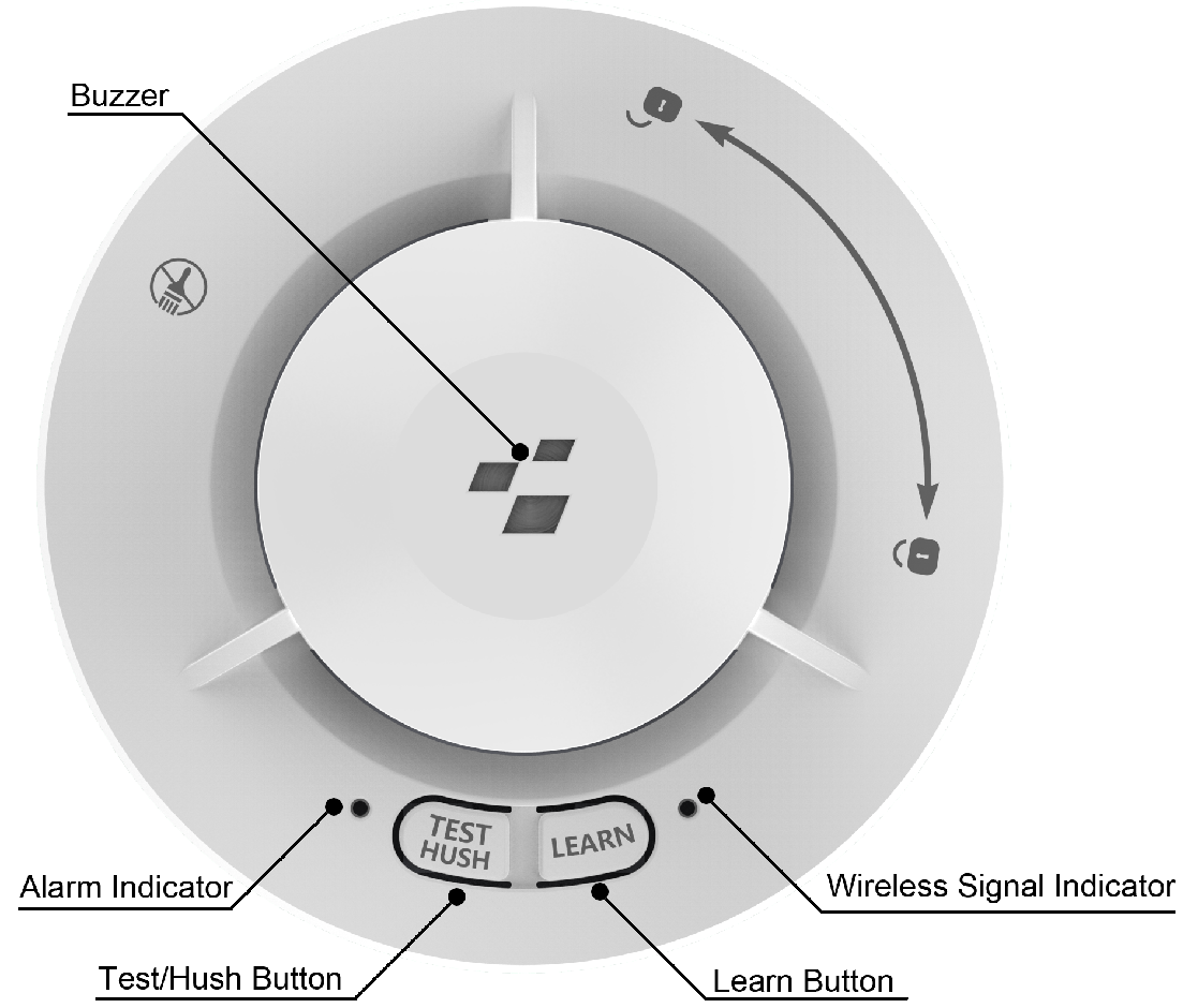 När det är i larmtillstånd, tryck på Test / Hush-knappen och produkten kommer att gå in i tystnadsläge. Larmindikatorn blinkar var 9: e sekund och inget hörbart ljud hörs, om inte rök blir tätare. Som kommer att vara i ca 9 minuter. Om du trycker på och håller Test / Hush-knappen i flera sekunder kommer att avsluta tystnadsläget.