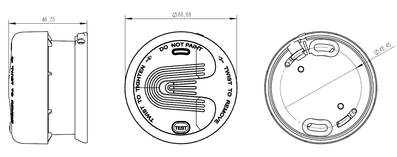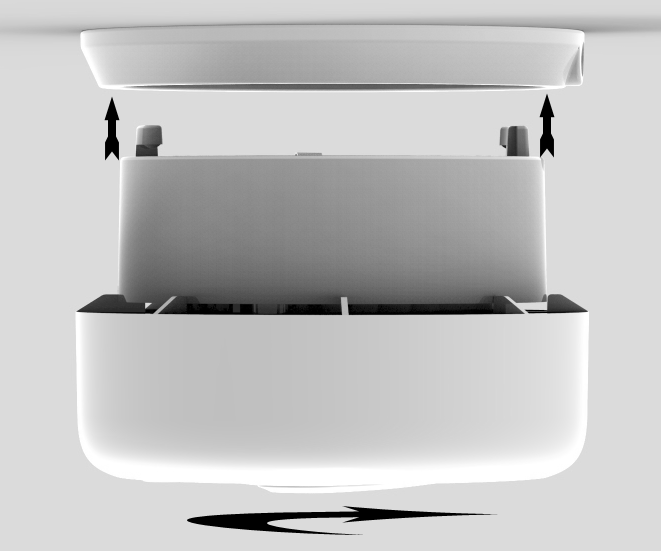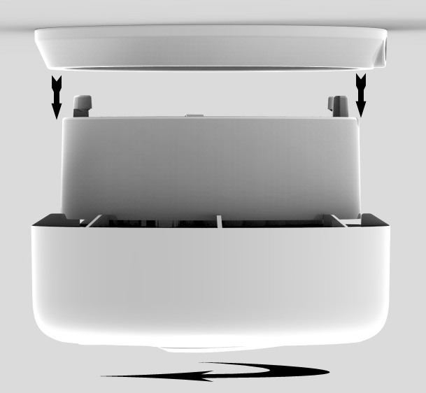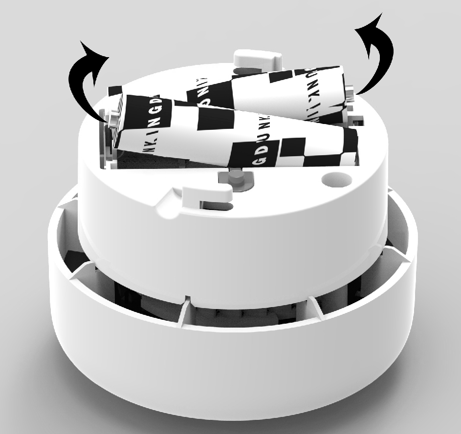 c. När batterierna byts ut, testa larmets funktion genom att trycka på testknappen. Om piper görs vilket innebär att produkten fungerar ordentligt, installera larmet till monteringsplattan som visas i figur 3.