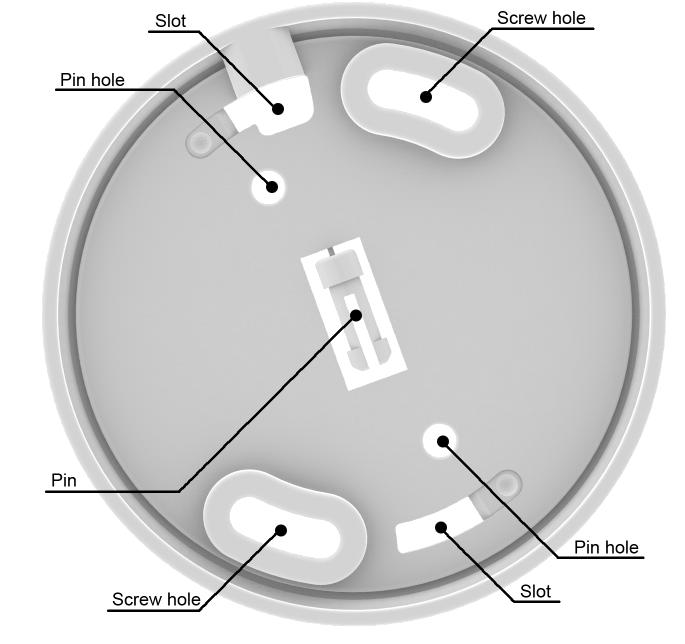 c. Sätt in kroken på produkten i slitsen på monteringsplattan. Vrid sedan larmet medsols tills det snäpper på plats.