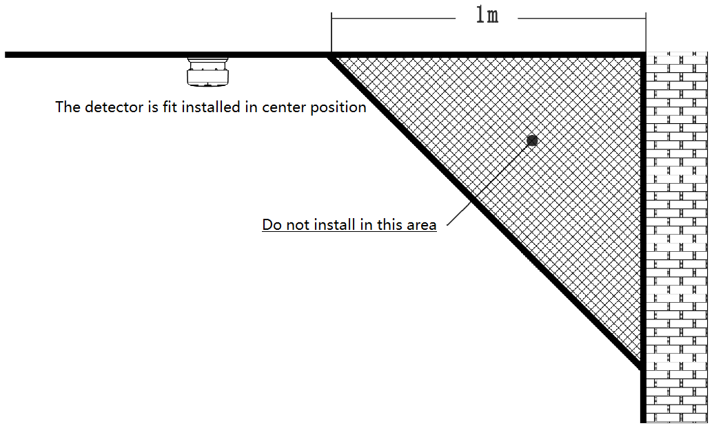 Om du installerar röklarmet i en passage vars bredd är mindre än 3M, installera den i mitten och installera en enhet varje 12m.