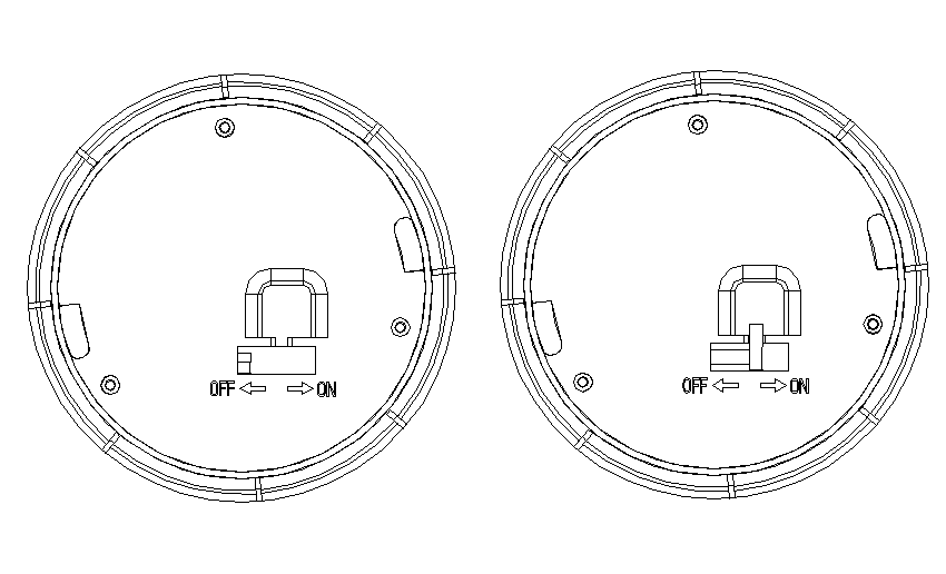 Batterinstiftet (röd) är avstängd vid början som figur 3. Slå på den på batteriet kommer att flyttas till stiftspårpositionen som figur 4